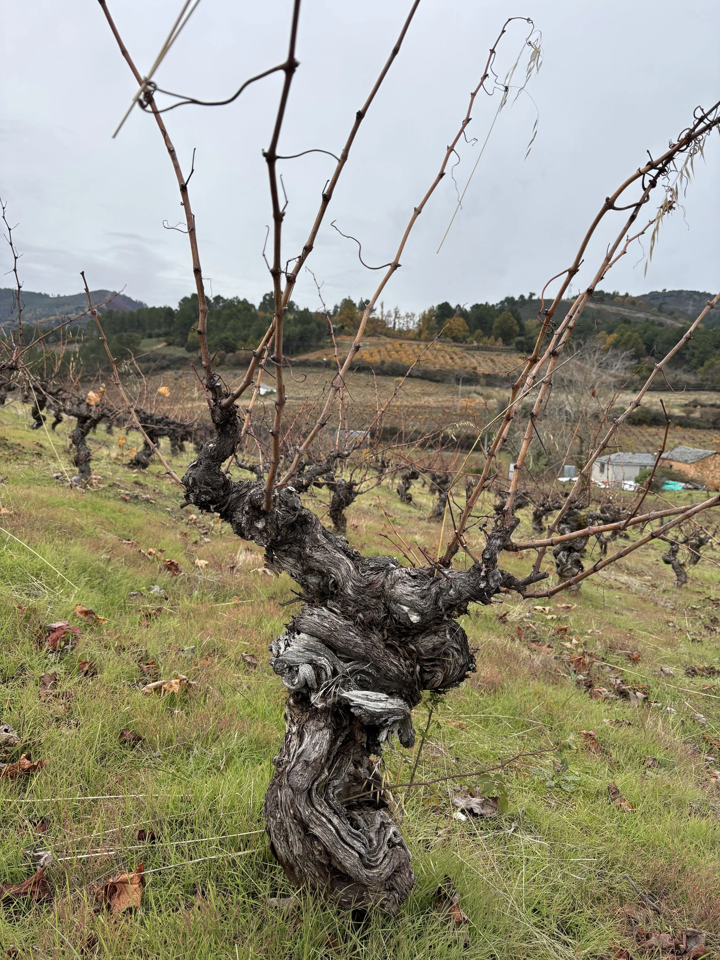 It was only when we drove out to see the very old vines in two of Nacho’s parajes, Fuente de San Lázaro and Monte Cotelo, the sources of some of his most expressive wines, that we truly grasped how soils, altitude, microclimate and orientation give each parcel its own ‘voice.’